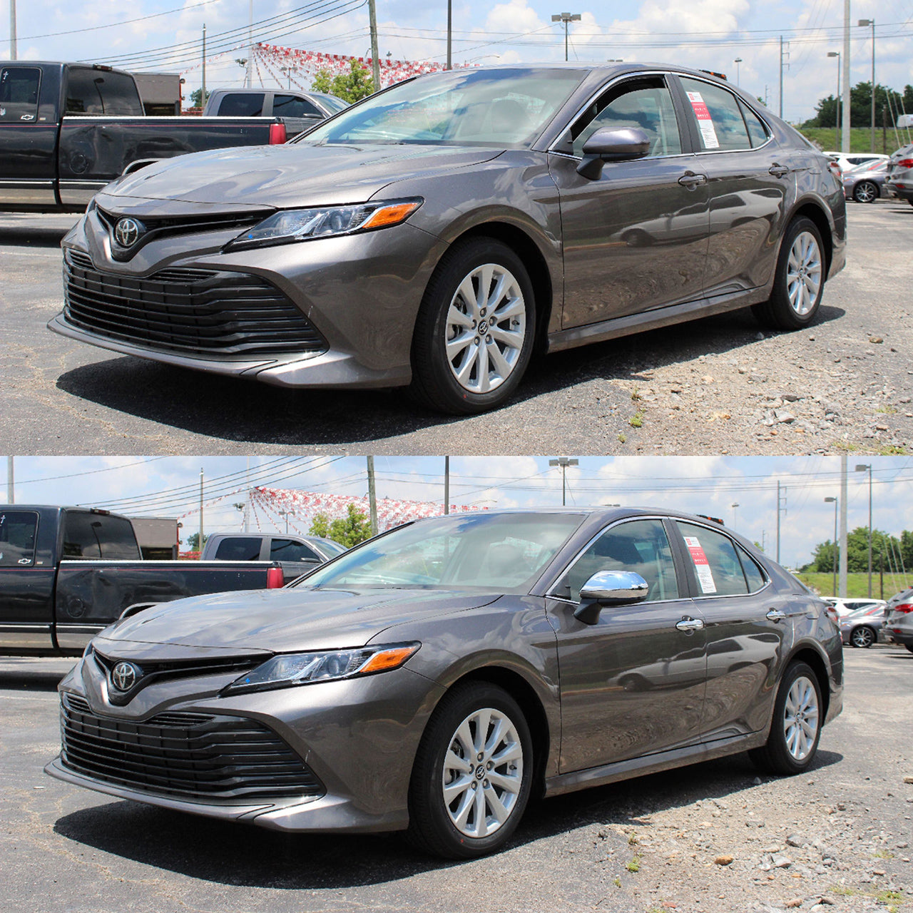 Conceal Damaged or Faded Mirrors: Our chrome overlay mirror covers provide an excellent solution for covering up any existing mirror damage or fading, restoring a fresh and pristine look to your vehicle's mirrors.